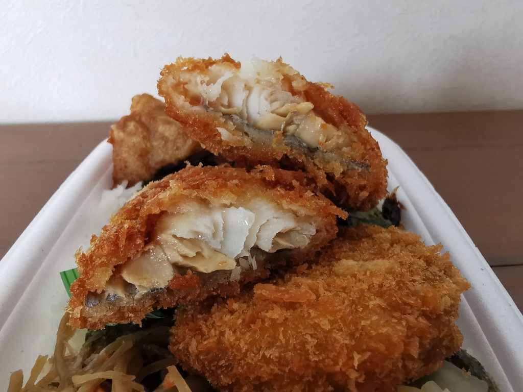 - これが「特のりタル弁当」でした。のり弁当と言えばちくわ天が入っているのが王道ですが、この商品にはそれが入っておりません。王道パターンの気分ではない時や、ちくわ天よりもから揚やメンチカツを食したい気分の時は、是非こちらを選んで見て下さい。
