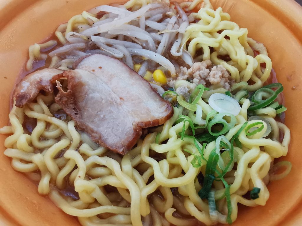 - 深みがあって濃厚な味噌味に、もやしも合うし、そぼろも合うし、コーンも合うし、チャーシューは軟らかいし、どの具材と一緒に、ちぢれ麺を口に運んでやろうかと、心を躍らせながら食べ進められる商品でした。
