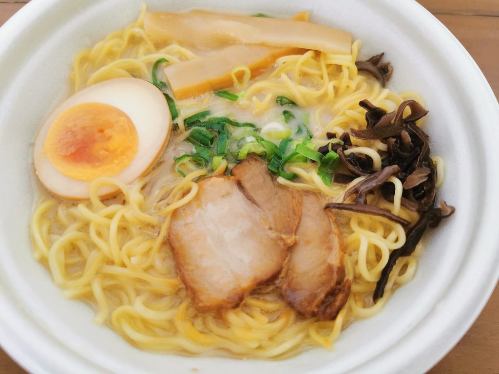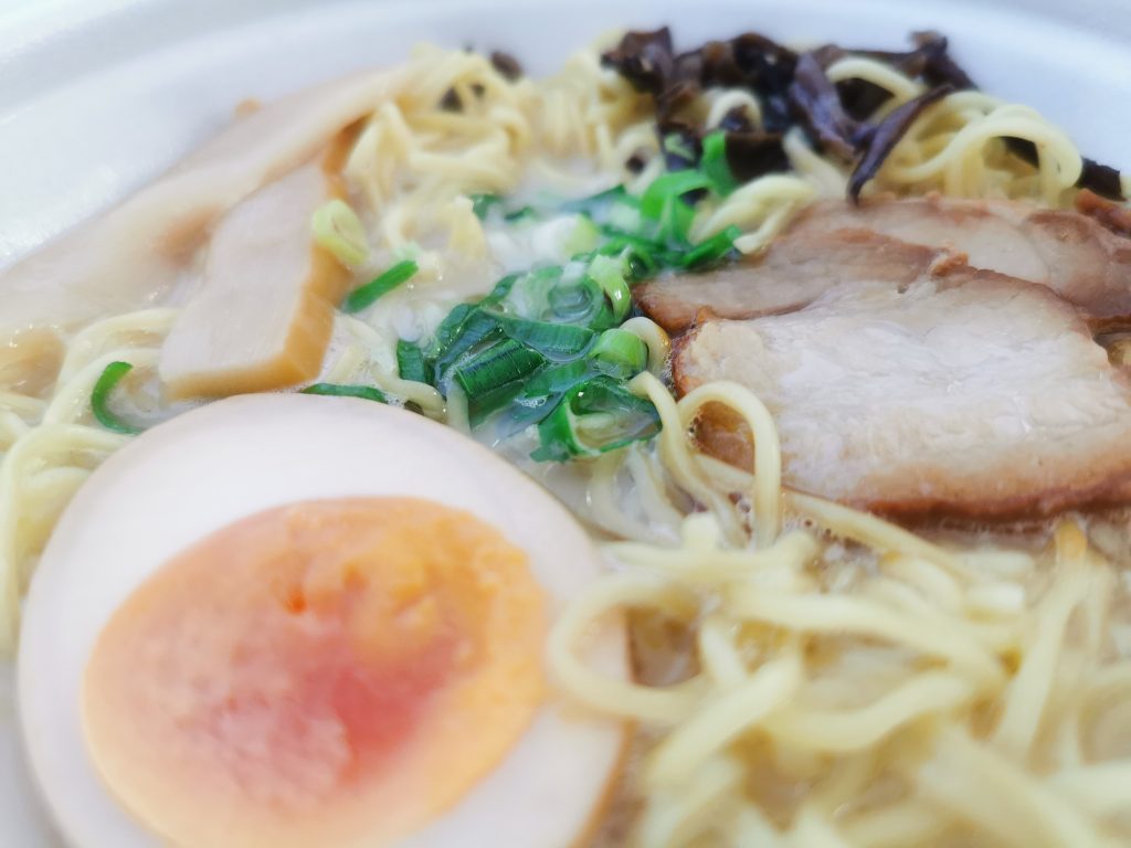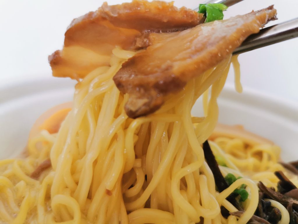 - 濃厚まろやか系のとんこつスープを絡めた具材と、細めのストレート麺を黙々と口に運ばせて頂きました。味付ゆで卵が有り難い一品ですね。